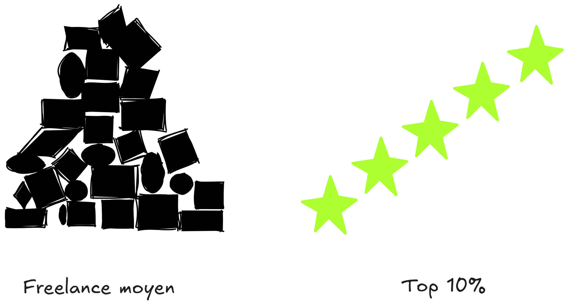 - Être un freelance moyen = avoir une entreprise qui stagne.