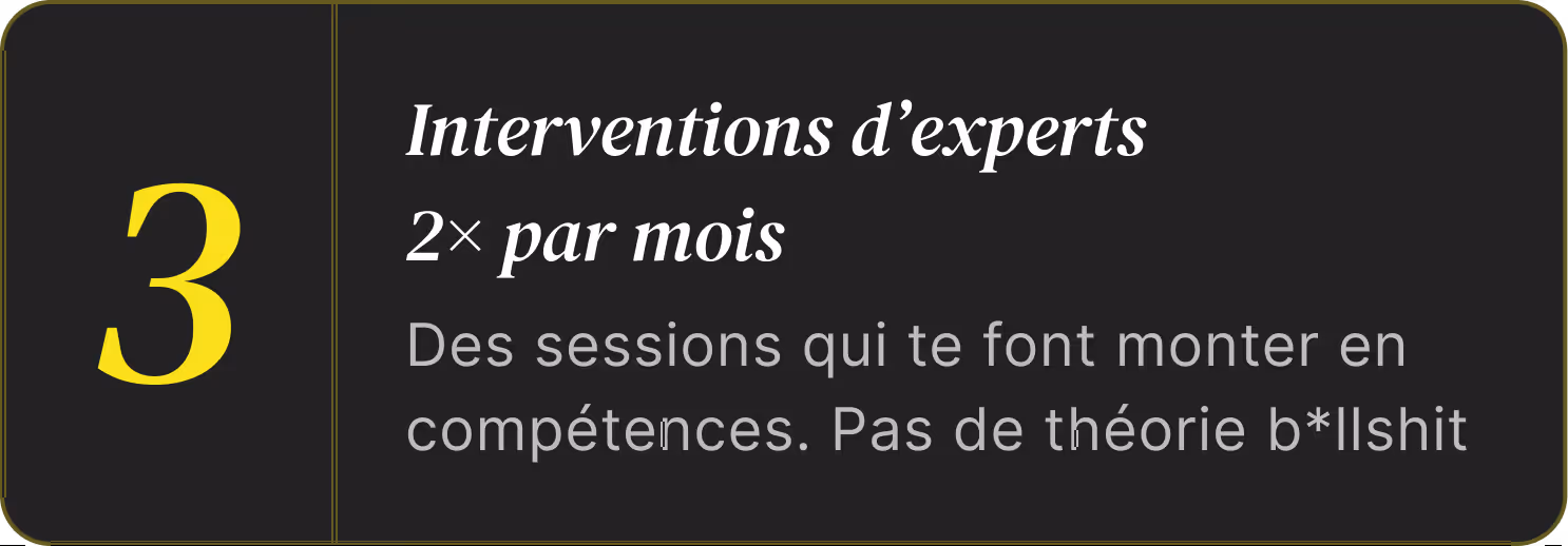 Le Club est une communauté sélective de freelances, solopreneurs et fondateurs d’agences qui veulent progresser plus vite grâce à :